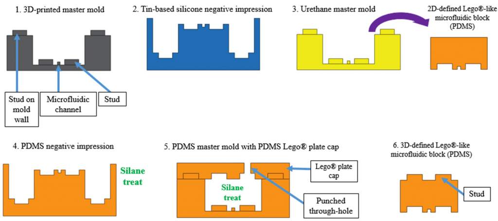 Kevin Vittayarukskul ve Profesör Abraham Lee'nin yaklaşımına göre Autodesk'i AutoCAD yazılımına gömülü bir mikro-akışkan kanallı blok tasarlamak için kullanıyor. Öncelikle bundan bir kalıp tasarlanır daha sonra EnvisionTEC tarafından Perfactory 3 mini kullanılarak 3D yazıcıda yazdırılır ve malzemeyi iyileştirmek için KDP polimerizasyon yöntemini kullanır. Sonra LEGO tuğlaları dökmek için silikon esaslı bir polimer olan PDMS ( Polidimetilsiloksan)’yi kullanır.